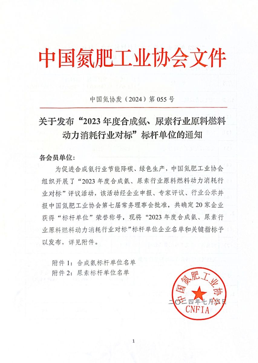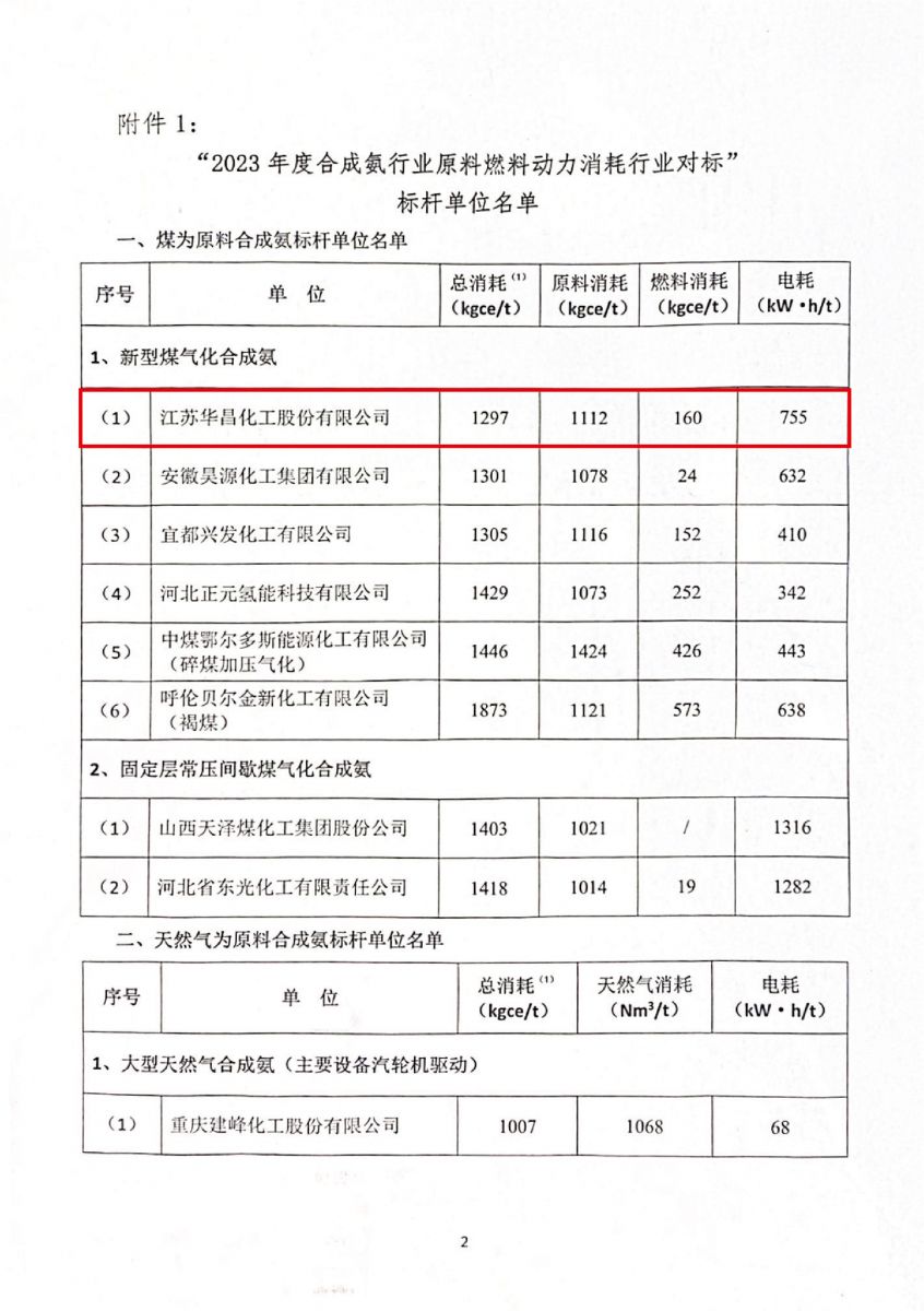 为促进合成氨行业节能降碳、绿色生产,中国氮肥工业协会组织开展了“2023年度合成氨、尿素行业原料燃料动力消耗行业对标”评议活动,经企业申报、专家评议、行业公示并报中国氮肥工业协会第七届常务理事会批准,确定广发体育获“标杆单位”荣誉称号。华昌化工以总消耗1297千克标准煤的成绩获评“2023年度合成氨行业原料燃料动力消耗行业对标”标杆单位(新型煤气化合成氨)第一名。.jpg)
