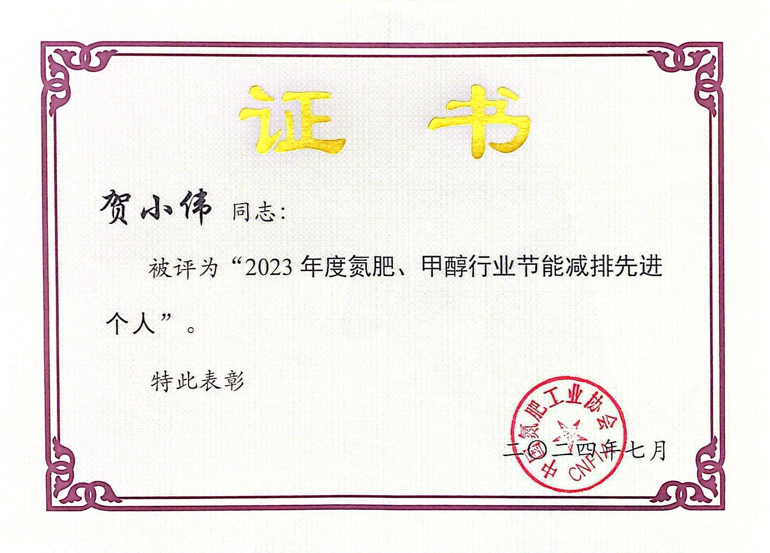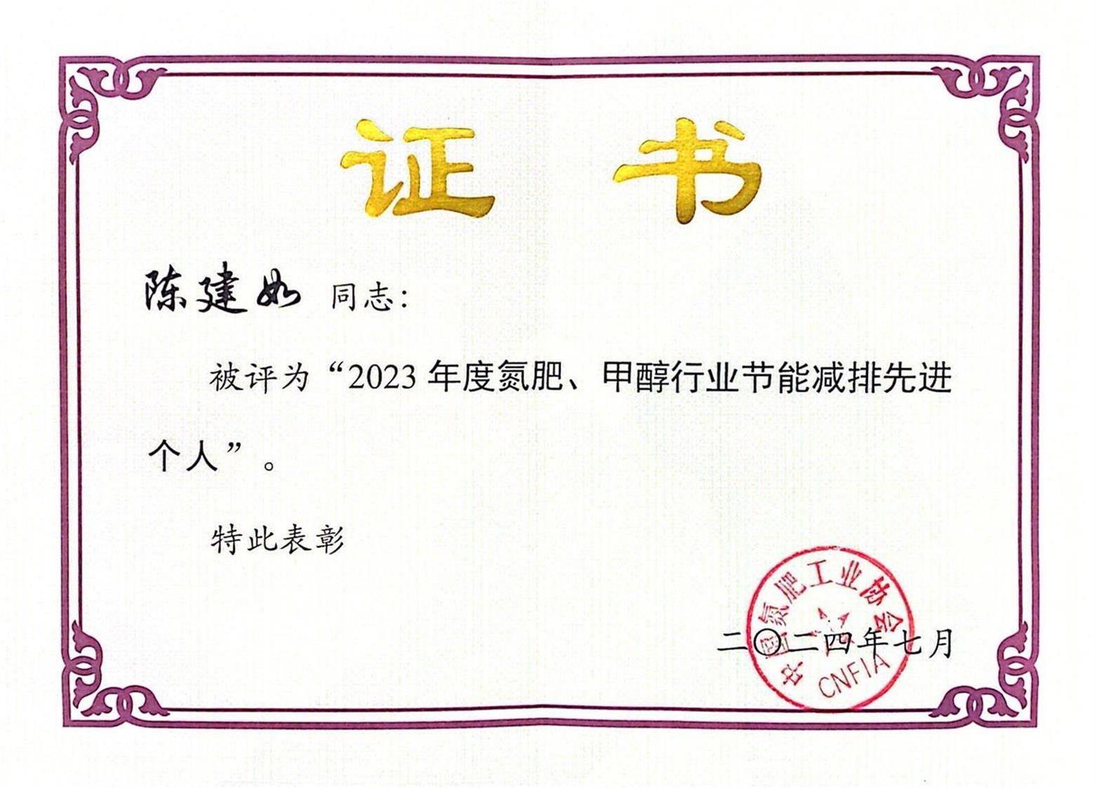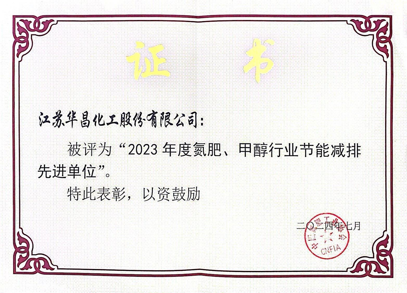 会上,中国氮肥工业协会对“2023年度合成氨、尿素行业原料燃料动力消耗行业对标标杆单位”进行颁奖授牌,并发布“2023年度氮肥、甲醇行业节能减排先进单位和先进个人”名单。 华昌化工获评“2023年度氮肥、甲醇行业节能减排先进单位”,华昌化工党委书记、副总经理贺小伟,工艺总工程师陈建如获得“2023年度氮肥、甲醇行业节能减排先进个人”荣誉称号。.jpg)
