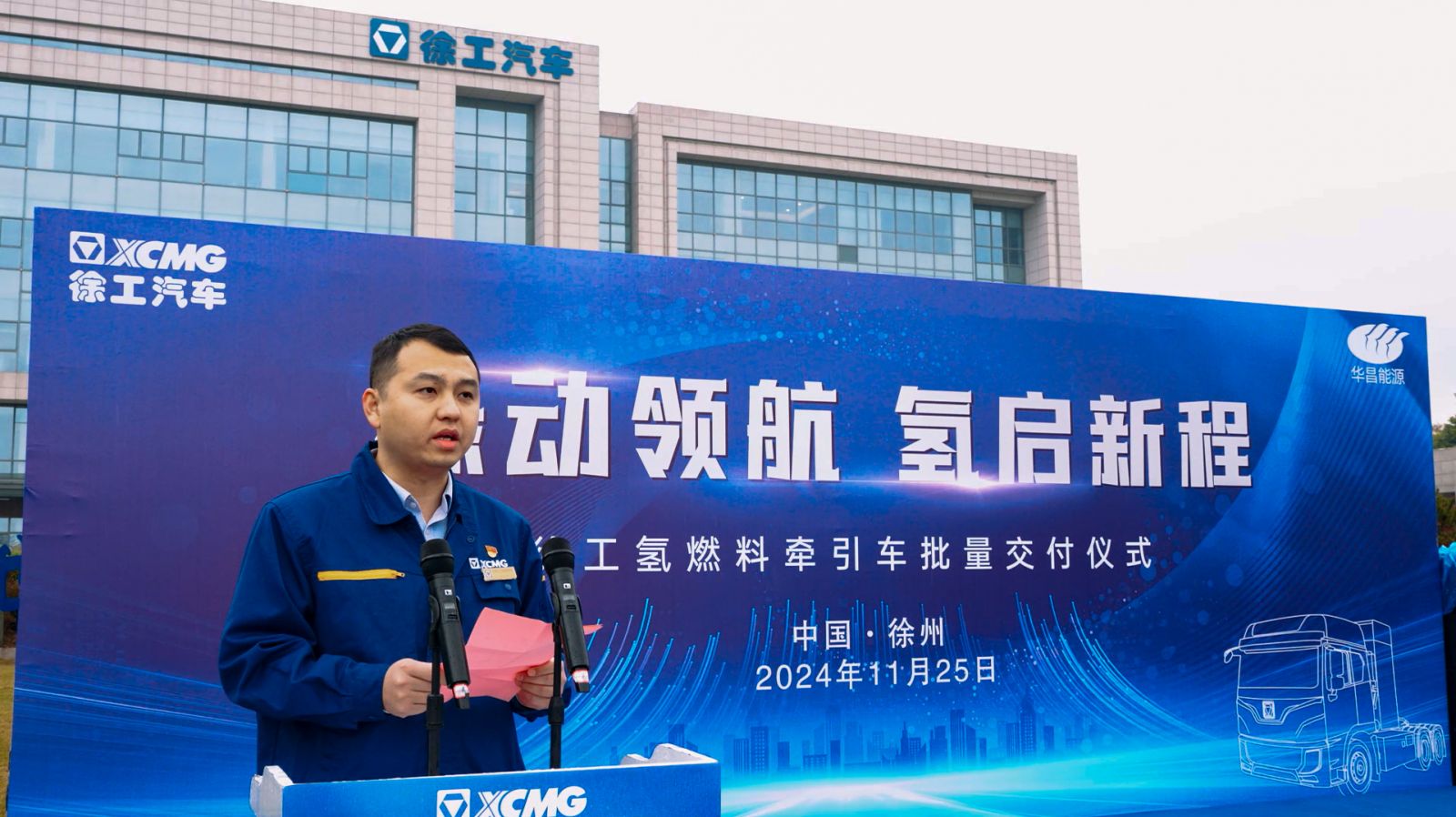 11月25日上午,以“绿动领航,氢启新程”为主题,“徐工&张家港运昌氢能重卡批量交付仪式”在徐工汽车园区内拉开帷幕。该批氢能重卡搭载了华昌能源150kW氢燃料电池系统,具有超强动力、超低能耗、超长寿命和超高安全性等优势,可满足多类场景运营需求。