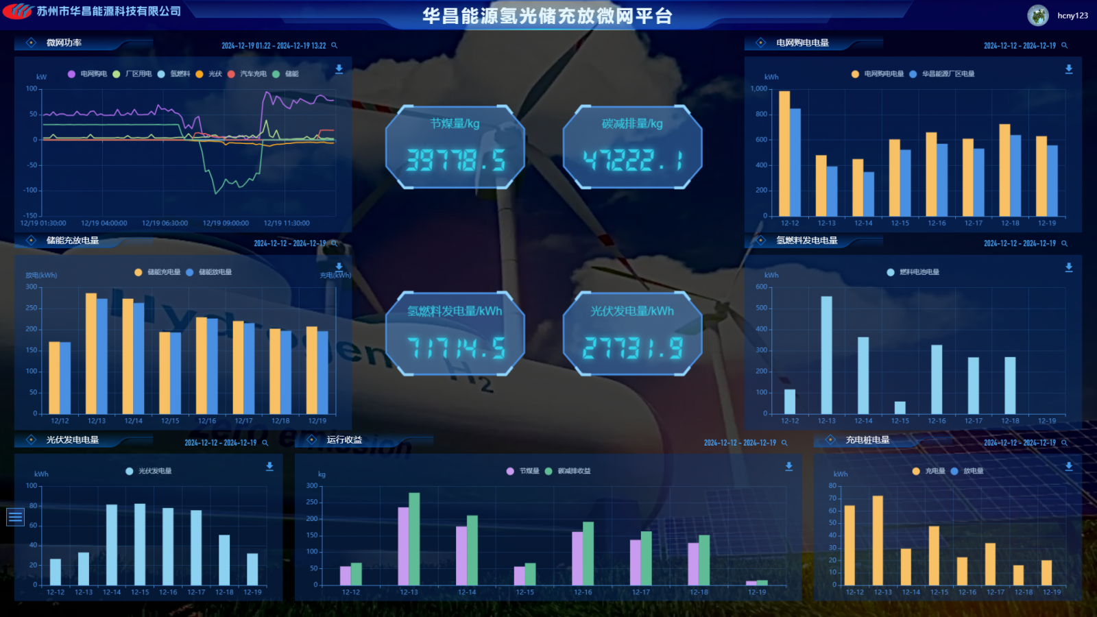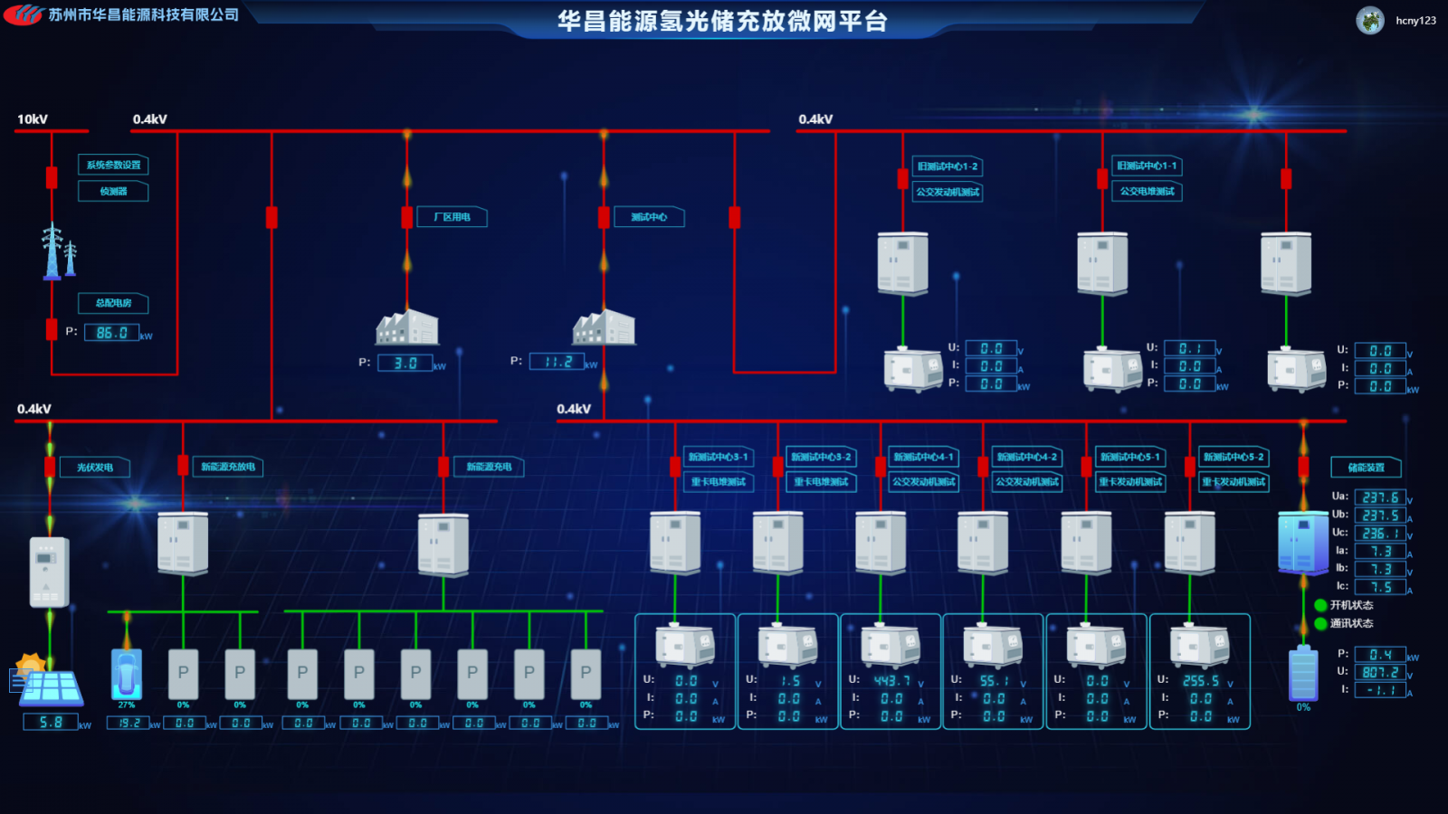 同时,该项目具备有序充电、V2G放电、配网柔性互动、安全检测、智能运维、能源管理等功能,实现了氢能发电的动态消纳,与光伏发电、储能系统深度融合,形成了绿色、智能、高效的能源还原生态系统,是省内首个“氢光互补”智能微电网项目。
