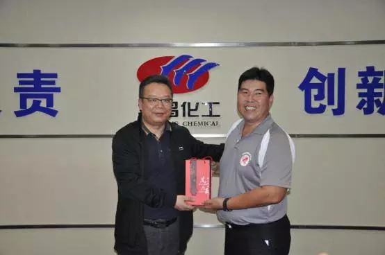 华昌化工副总经理与盛立农业互赠礼物,加深感情